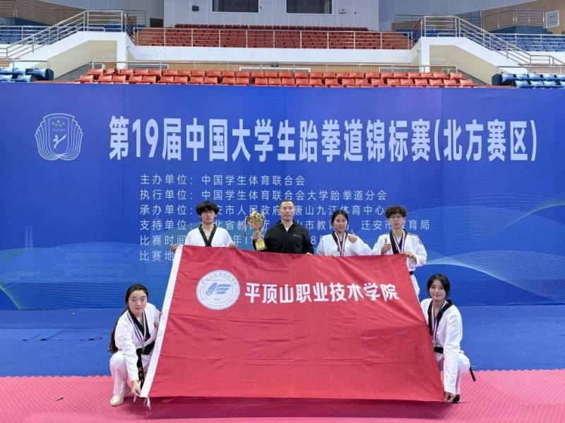 11月13日至19日,由中国大学生体育协会主办、中国学生体育联合会大学生跆拳道分会执行的“第19届中国大学生跆拳道锦标赛”在河北迁安九江体育中心隆重举行。平顶山职业技术学院跆拳道代表队在赛事中斩获1金、1银、2铜、一个第五名,丙B组女子团体总分第一名的骄人成绩再次登顶!