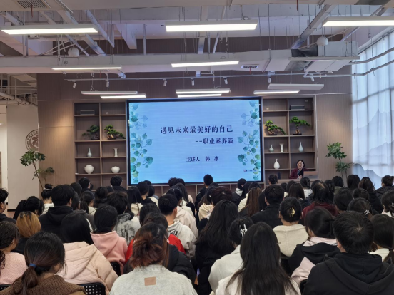 11月20日下午,开封文化艺术职业学院文心书院举办“遇见未来最美好的自己”职业素养主题教育讲座。讲座由科研外事处处长韩冰教授主讲,工艺美术学院、初等教育学院的百余名学生参加。