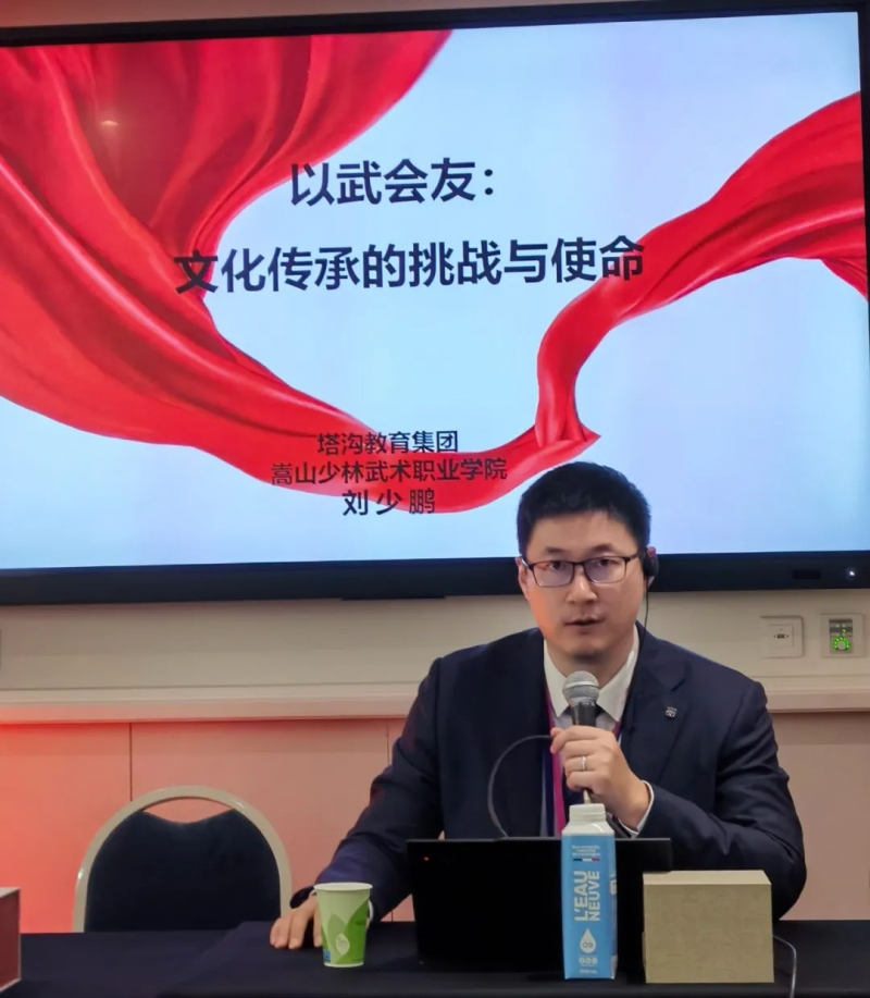 刘少鹏以论坛主题“传承”为引,娓娓道出少林武术1500年的发展史和家族传承少林武术300余年的历史脉络,深刻阐述了如何在改革开放的时代潮流中创办少林塔沟武术学校的历程和办校46年间取得的赫赫成绩。并以英国留学7年的亲身经历与体验,以及学校20年武术特色育人的实践认真地思考武术传承的未来使命——与世界文化的交流与互鉴。