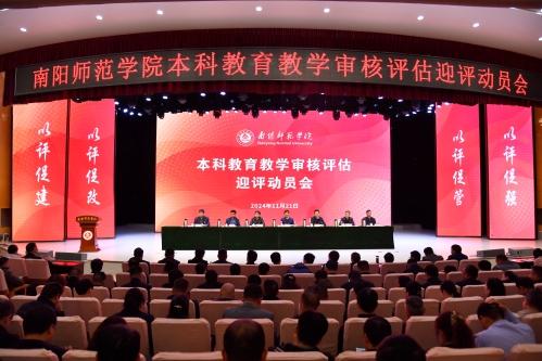 11月21日下午,南阳师范学院在音乐厅召开本科教育教学审核评估迎评动员会。校党委书记张宝锋,校长罗永松,党委副书记孟静雅,纪委书记、监察专员刘守勇,副校长刘红林、熊新忠、谢海泉出席。各职能部门主要负责人、评估专干,各学院(部)领导班子、科级干部、专业负责人,评建办全体人员参加会议。会议由谢海泉主持。