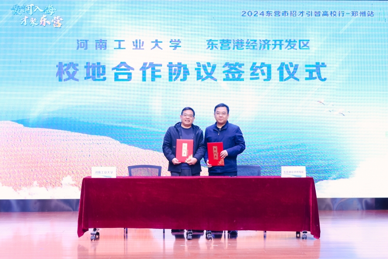 随后,周志强与马峰分别代表河南工业大学和东营市签署校地合作协议,并为东营港经济开发区(东营综合保税区)校园引才工作站揭牌。