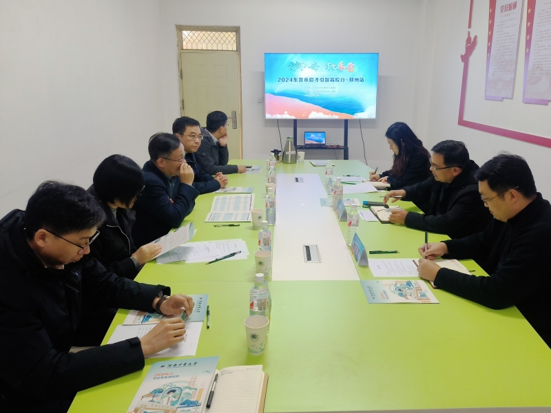 11月19日,山东省东营市2024年“黄河入海·才聚东营”招才引智城市行郑州站活动在河南工业大学莲花街校区举办。活动前,河南工业大学就业创业中心主任周志强、市场信息科科长石丹丹、科员魏因玉与东营市人社局党组成员、市公共就业和人才服务中心主任李长林一行7人进行座谈。
