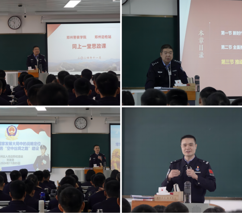 11月6日,郑州警察学院马克思主义教研部邀请郑州边检站政治处副主任郎玲、边检处副处长刘龙龙等一行6人到校,走进《概论》课堂,为学生同上一堂思政课。活动分为课前集体备课、课堂共同授课等两个环节。