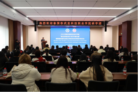 11月23日,“豫见河南交院 知行中原交通”泰国春武里科技职业学院来华研学团开班典礼在河南交通职业技术学院(简称“河南交院”)郑东校区举行。泰国春武里科技职业学院院长万娜?丹普拉帕、副院长奔姹拉丝?丹普拉帕、校长顾问李华,河南交院校长焦宏涛、副校长李小强出席仪式。开班仪式由河南交院副校长王玮主持。来自泰国春武里职业学院师生代表及河南交院相关职能部门负责人、研学专班工作人员50余人共同参加仪式。
