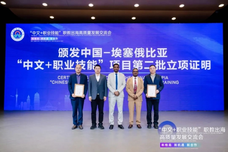 “中国-埃塞俄比亚‘中文+职业技能’项目”于2023年6月启动,中埃两国共有11所院校参与,项目秘书处设在黄河水利职业技术学院。截至目前,已选派5名中方专业教师赴埃塞俄比亚开展教学,面向埃塞俄比亚14所院校的60余名教师开展培训,开发国际化教学标准9个、系列双语教学资源4套,研发的22项职业标准获得埃塞俄比亚劳动与技能部官方认可。项目的实施旨在推进中国与埃塞俄比亚职业院校国际合作的务实发展,搭建两国教育合作与人文交流的桥梁。