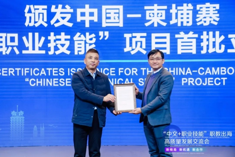 颁发“中国-柬埔寨‘中文+职业技能’项目”立项证明