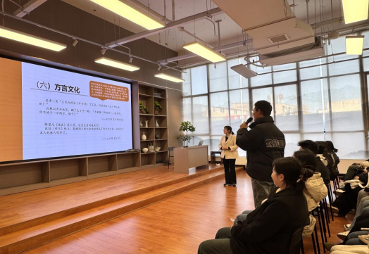 讲座内容丰富详实,从开封的饮食文化、体育文化、书法文化,到戏曲文化、技艺文化、方言文化乃至民俗文化,面面俱到,如同一幅徐徐展开的历史文化长卷。同学们沉浸其中,全身心投入,不时与董老师积极互动。当谈及开封方言文化时,开封籍学生踊跃登台,以地道的开封方言展示本土语言的独特韵味,赢得了全场师生的热烈掌声,将讲座气氛推向高潮。此次讲座不仅有效拓宽了学生们的文化视野,提升了他们的审美素养,更点燃了在开封求学的大学生们对这座城市文化的强烈认同感、归属感与自豪感。它宛如一颗文化的火种,为开封文化在校园内外的传承、普及与推广注入了新的活力,在弘扬与传播开封文化的道路上留下了坚实而深刻的脚印。