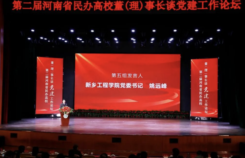 新乡工程学院董事长赵建永、党委书记姚远峰参加论坛,与出席论坛的领导嘉宾共话党建引领成效,共谋教育发展大计。赵建永作为全省民办高校董(理)事长代表,以“整固提升 凝聚力量 高质量党建引领学校事业高质量发展”为题在论坛上作了重点交流发言。
