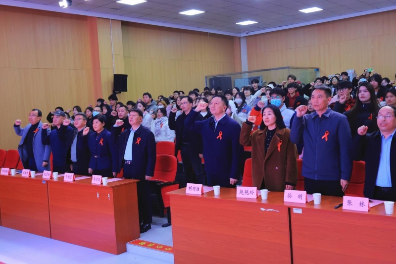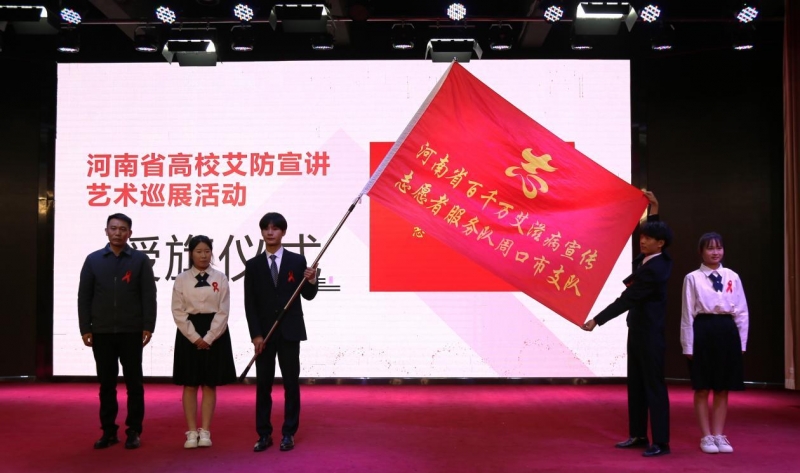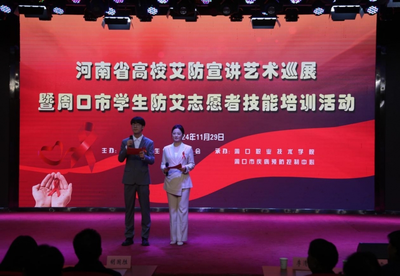 11月29日,河南省高校艾防宣讲艺术巡展暨世界艾滋病日大型宣传活动在周口职业技术学院举行。市卫健委党组书记、主任胡国胜,党组成员、副主任、疾控局局长赵艳玲,市红十字会党组成员、副监事长赵志新,市疾控中心主任孙明,周口职业技术学院校长李清臣、副校长于爱霞及周口职业技术学院1000余名师生现场参加。三个校区近两万名学生通过网络直播在线同步观看。