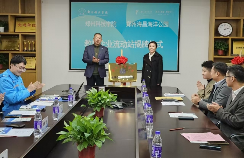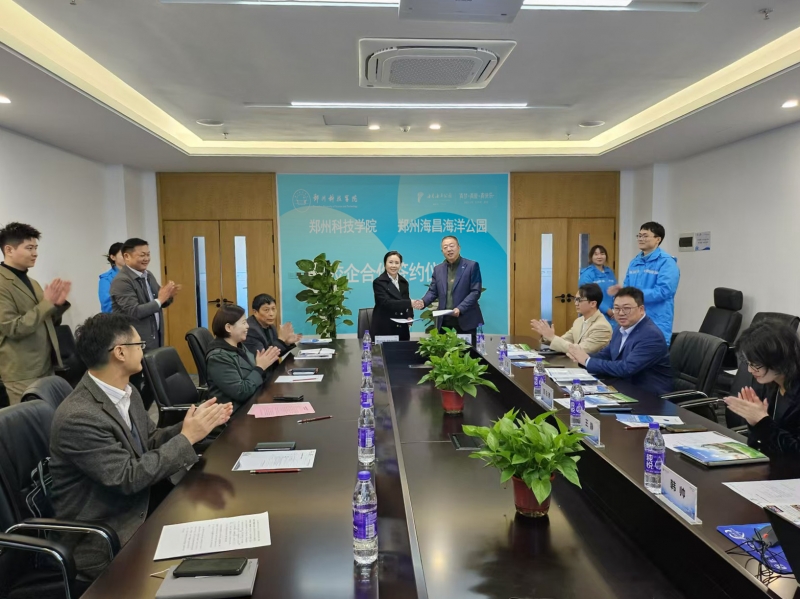 双方围绕校企合作、产教融合、毕业生实习实训、就业基地建设等核心议题深入交流,共同探索构建人才培养与市场需求的无缝对接机制,力求实现校企资源的优化配置与高效融合。刘赛赛与刘永尧代表双方签署了校企合作协议,并举行揭牌仪式。郑州科技学院向郑州海昌海洋公园授予“实习就业基地”和“教师企业实践流动站”牌匾,郑州海昌海洋公园授予郑州科技学院“人才培养基地”牌匾。