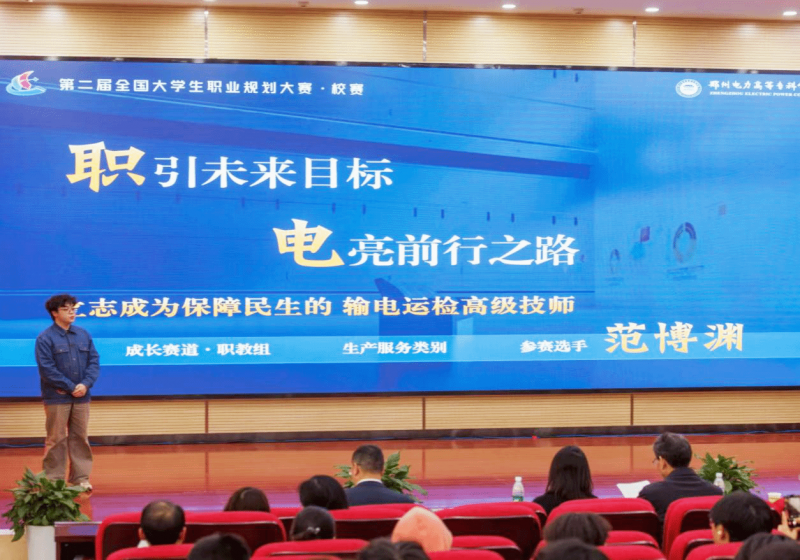 12月3日,郑州电力高等专科学校2024年大学生职业规划大赛(成长赛道)总决赛在学生中心举行,学校党委委员、副校长黄鹏出席,各二级学院书记、副院长、辅导员和指导教师参加活动,400余名学生到场观摩学习。