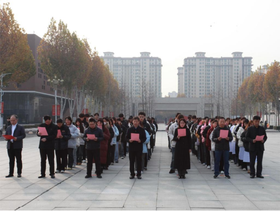12月4日上午10时,鹤壁职业技术学院在海棠园校区知行广场举行宪法晨读活动,学校党委委员、副校长王在尚,党委委员、宣传部部长王晓庆出席活动,各二级学院党总支负责人及师生代表240余人参加。