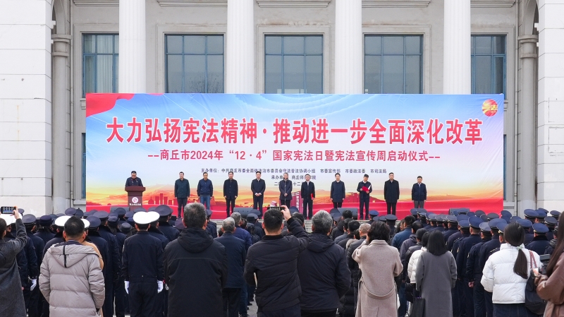 12月4日,是第十一个国家宪法日。当天上午,商丘市2024年“宪法宣传周”启动仪式在商丘师范学院举行。商丘市委常委、市委政法委书记潘峰出席并宣布“宪法宣传周”正式启动。商丘市委常委、市委宣传部部长翁铁军出席并发出倡议。校党委书记张志坚、校长陈向炜,商丘市人大常委会副主任、民建市委会主委刘北京,商丘市人民政府副市长、市公安局局长黄继恒,商丘市政协副主席王全国,商丘市人民检察院检察长王建波出席。