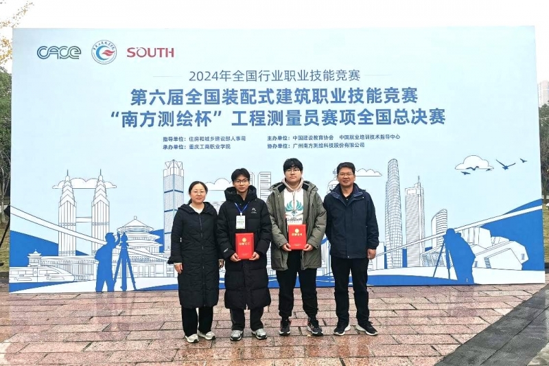 11月28日-12月1日,2024年全国行业职业技能竞赛第六届全国装配式建筑职业技能竞赛“南方测绘杯”工程测量员赛项全国总决赛,在重庆工商职业学院成功举行。本次竞赛吸引了来自全国20所院校的40名选手参加,河南测绘职业学院由测绘工程系副主任柴炳阳担任领队,徐如意、张浩哲担任指导老师,史正、焦秋硕两名学生参赛,经过为期两天的激烈角逐,最终荣获三等奖2项。