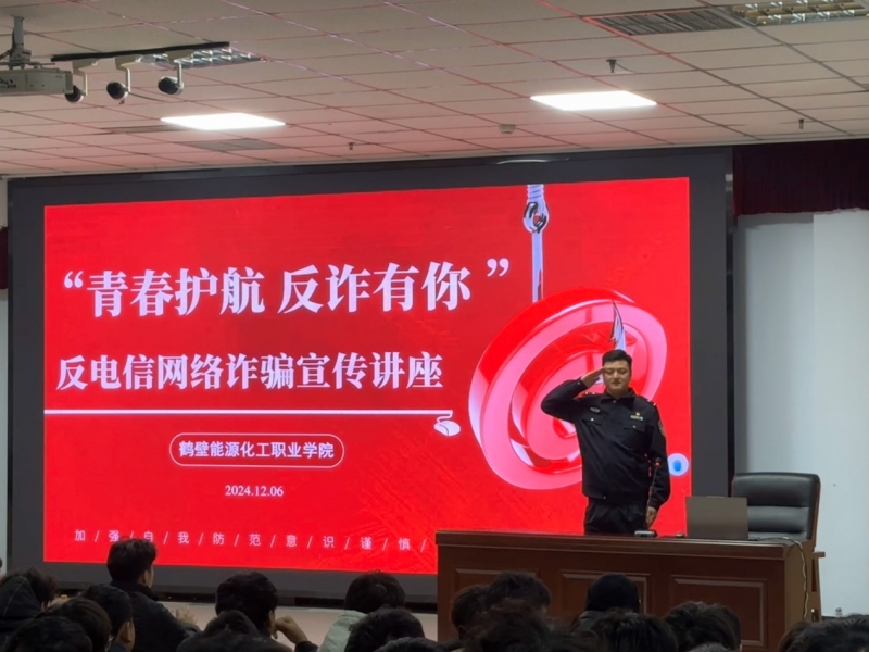 为进一步提升学生的反诈防诈意识,有效遏制电信网络诈骗案件的发生,鹤壁能源化工职业学院于12月6日在综合楼报告厅开展了反电信网络诈骗宣传讲座。此次讲座特邀鹤壁市公安局淇滨区分局反诈中心的民警原志昂担任主讲嘉宾,学院300余名学生参会。