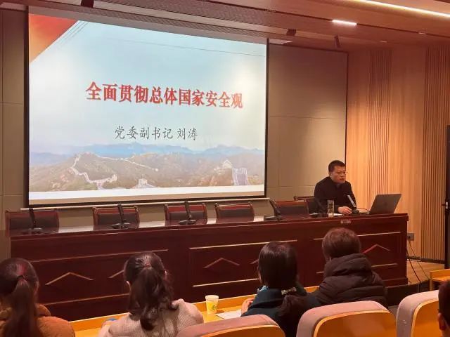 刘涛以《全面贯彻总体国家安全观》为题,围绕“为什么说保证国家安全是头等大事、什么是总体国家安全观、怎样推进国家安全体系和能力现代化”三个方面进行了深入系统的讲解,旨在增强师生的国家安全意识,提升维护国家安全的能力和责任感。他采用问题导入的方式,以“全民国家安全教育日的设立”作为切入点,立即引发了在场师生的强烈兴趣和思考。他说,我们每一个人都要时刻关注国家安全,共同维护国家的稳定与繁荣。在阐述“为什么说保证国家安全是头等大事”时,他引用了大量历史案例和现实事件,将中国传统文化中关于国家安全的思想融入其中,不仅拓展了学生的视野,也增强了课程的文化底蕴。他指出,国家安全是民族复兴的根基,是社会稳定和国家繁荣的前提。没有国家安全,一切发展都将无从谈起。接着,他从政治、经济、文化、社会、生态等多个维度出发,详细阐释了“什么是总体国家安全观”。他强调,总体国家安全观是一个动态发展的概念,需要随着时代的变化而不断更新和完善。他通过展示一系列与国家安全相关的图片和视频,引导学生深入思考、畅谈感悟。在谈到“怎样推进国家安全体系和能力现代化”时,他指出,要加强国家安全法治建设,完善国家安全战略和政策,强化国家安全宣传教育,提高全民国家安全意识。他还结合我校开展的国家安全教育活动,组织了一场主题讨论:“你能想到哪些领域的国家安全?”学生们积极发言,表达自己的见解和看法。