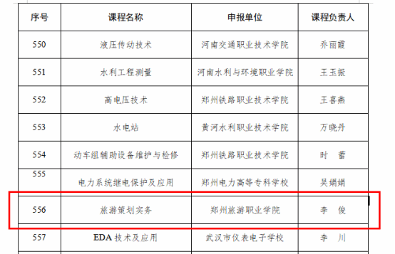 12月9日,教育部公布了2023年职业教育国家在线精品课程名单,郑州旅游职业学院教师李俊主持的《旅游策划实务》课程获得认定。