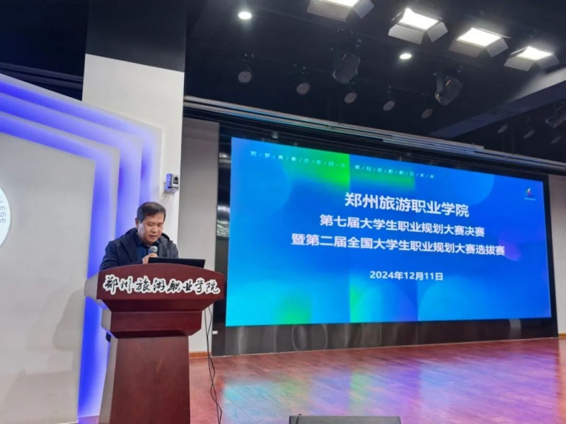 12月11日,郑州旅游职业学院成功举办了第七届大学生职业规划大赛决赛暨第二届全国大学生职业规划大赛河南省赛选拔赛,党委委员、副校长徐永清出席并致辞,21位选手参加,100余名师生观摩了比赛。河南省教育厅大学生就业创业指导名师蒋华勤教授、郑州升达经贸管理学院就业处处长冯科、郑州八爪鱼教育科技有限公司总经理王智晓3位校外专家及郑州旅游职业学院职业发展与创新创业指导教研室教师刘丽军、刘宁宁等5位老师共同担任大赛评委。