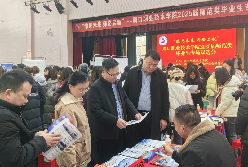 12月14日,由周口职业技术学院、周口市人力资源和社会保障局共同举办的“豫见未来,师路启航”2025届师范类毕业生专场双选会在周口职业技术学院开元校区体育馆举行。学校副校长王隼、招生就业处处长许建国,周口市人社局创业就业服务中心副主任杜嵩梅,以及学校相关二级学院负责人等出席活动。
