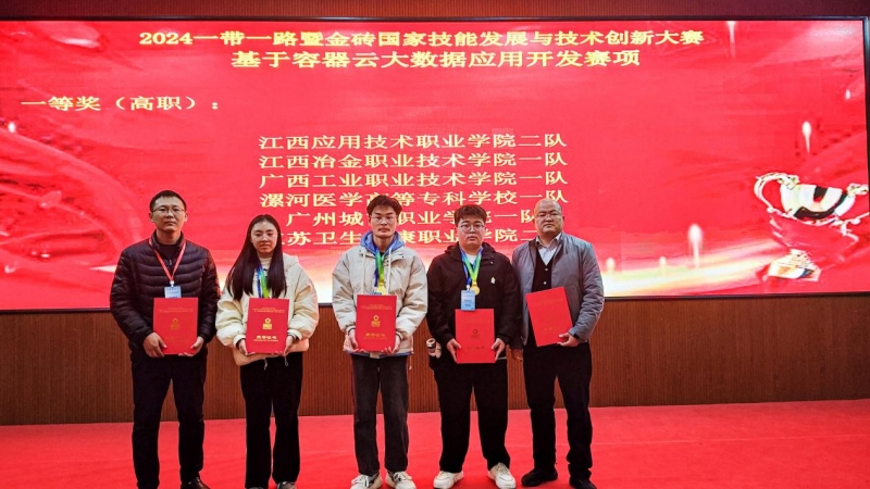 12月15日至16日,2024年“一带一路”暨金砖国家技能与技术创新大赛之基于容器云大数据应用开发赛项决赛在江西省赣州市江西应用技术职业学院成功举办。漯河医学高等专科学校(以下简称漯河医专)公共卫生与健康营养学院23级大数据技术(健康方向)专业学生樊珂、马浩南、李璟璇组成的参赛团队,在与全国百多支队伍的激烈角逐中,凭借精湛专业技能与默契团队协作精神,赢得评委高度赞誉,斩获大赛一等奖(金牌),学校亦荣获“最佳组织奖”。