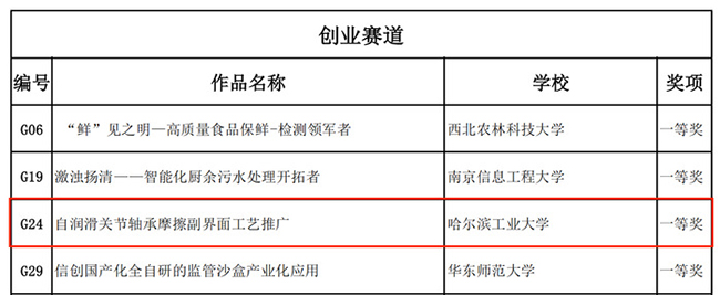 本届大赛吸引了全国31个省市自治区,1120多所高校共计20余万名在校学生参加。经研究院双创基地推荐,由研究院基础件与摩擦学研究所马欣新教授指导,学校产教融合项目(郑州)2023级材料科学与工程学院博士研究生何双利、研究院基础件与摩擦学研究所博士后黄金宝及李万嘉组成的团队带领“自润滑关节轴承摩擦副界面工艺推广”项目在本届大赛创业组中脱颖而出,斩获全国一等奖。
