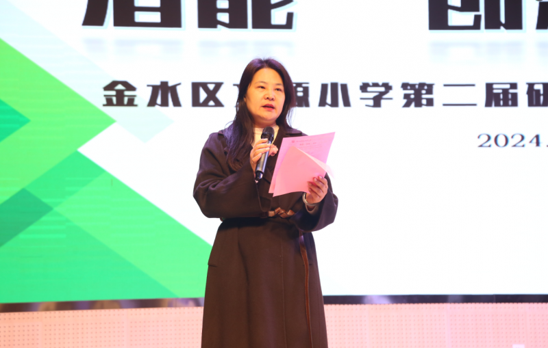 金水区文源小学副校长李淑莹以《123模式,重塑育人新样态》为题,讲述了文源小学通过厘清一个目标、构建两个途径、完善三项机制开展,建构“123”研究性学习实践模式,推动研究性学习向纵深发展,重塑育人新样态的探索之路。