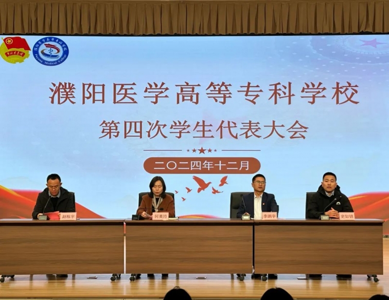 12月20日,濮阳医学高等专科学校在易明楼一号报告厅召开第四次学生代表大会。濮阳医学高等专科学校副校长何美玲、团市委副书记李鹏宇、团市委基组部部长史如锦出席。濮阳医学高等专科学校团委书记,各学院团总支书记及140名学生代表参加会议。