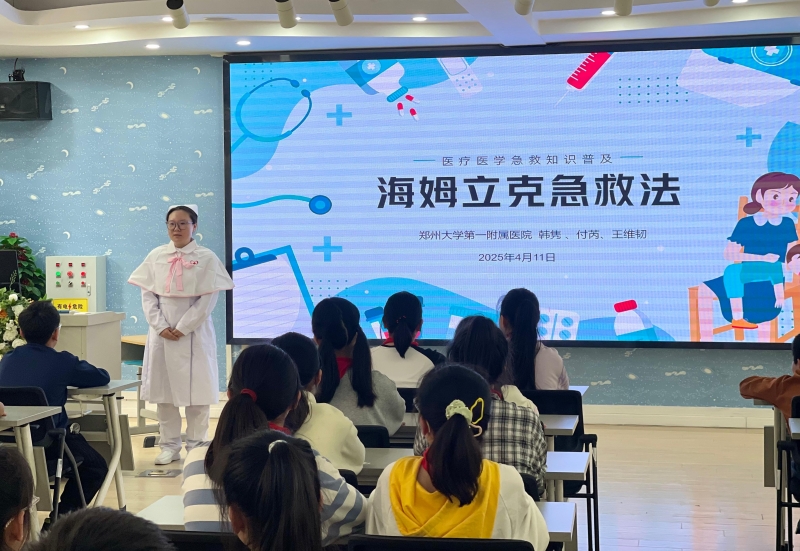 为增强学生健康意识,向其普及爱眼知识与急救技能,4月11日下午,郑州市中原区伏牛路第二小学邀请郑州大学第一附属医院手术五部护士付芮、王维韧和眼科护士梁璐走进校园,为孩子们带来一场生动实用的近视防控与海姆立克急救法健康科普讲座。