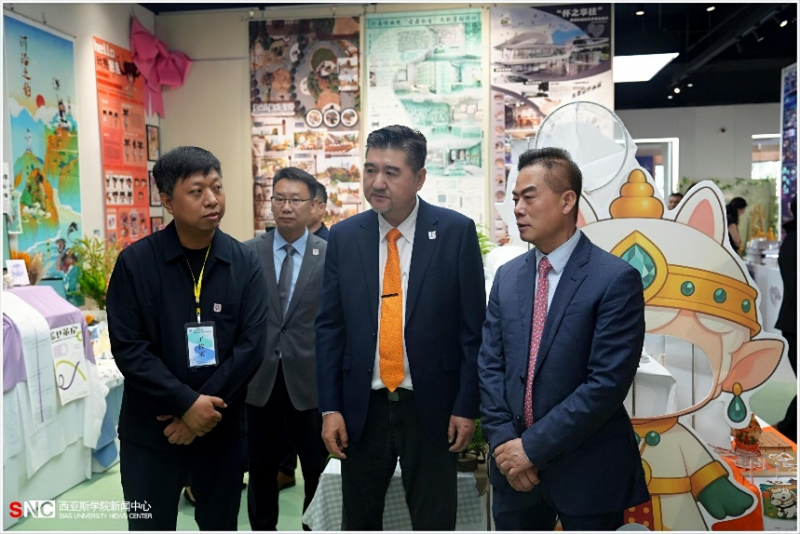展览期间,郑州西亚斯学院创办人、理事长陈肖纯博士,学校党委书记马建生和校长等校领导亲临现场参观指导,与在场师生亲切交流,深入了解作品创作理念、设计过程及技术应用细节。校领导对学子们展现出的专业素养、创新思维及对设计的热情投入给予高度评价,并对艺术设计学院教师的辛勤付出与悉心指导表示肯定。