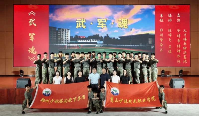 演出的成功,赢得了省军区领导的高度认可。河南省军区政治工作局特赠锦旗,上书“弘扬中华尚武精神,培养卫国戍边少年”,高度赞扬嵩山少林武术职业学院将国防教育、爱国主义精神与武术文化精髓深度融合、精准育人的特色办学之路。郑州警备区政治工作处赠予的锦旗题词“立德树人传武道、精准育人强国防”,则精准概括了该校在立德树人、为国防和军队建设培养输送优秀人才方面取得的突出成绩。两面锦旗,既是崇高的荣誉,更是来自国防一线对学校办学方向、育人理念与实践成果的权威肯定和殷切期望。