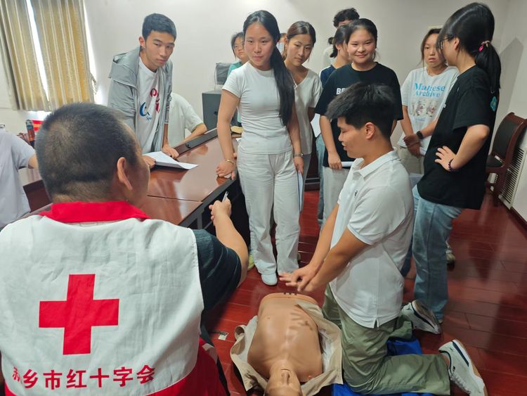 7月8日,暑期实践团队前往新乡市红十字会参加2025年暑假“三下乡”实践活动,红十字会段老师详细介绍了红十字会的发展历程,着重强调了“人道、博爱、奉献”的红十字精神。她通过生动的案例和直观的视频展示,深入浅出地讲解了急救知识,让同学们深刻体会到了急救知识在关键时刻的重要性。在专业老师的悉心指导下,成员们分组进行了心肺复苏、创伤包扎等急救技能的实操练习。实操结束后,所有成员均顺利通过了成果考试,为此次培训画上了圆满的句号。此次活动为“三下乡”社会实践活动增添丰富内涵,有助于培养学生的社会责任感和实践能力。