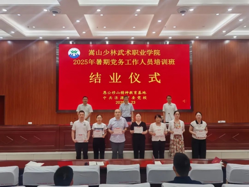 为进一步巩固深入贯彻中央八项规定精神学习教育成果,推动作风建设常态化长效化,持续加强学院党务工作队伍党性修养,坚定理想信念、保持优良作风,不断提高学校党务工作队伍能力水平和综合素质,扎实推进基层党建工作。8月20日至23日,嵩山少林武术职业学院2025年暑期党务工作人员培训班在河南省济源市愚公移山精神教育基地举办。学院党委书记田逸、党委副书记王占强、纪委书记牛超群、各二级党组织书记和学生党支部、教师党支部书记及组织员等二十余人参加了培训。