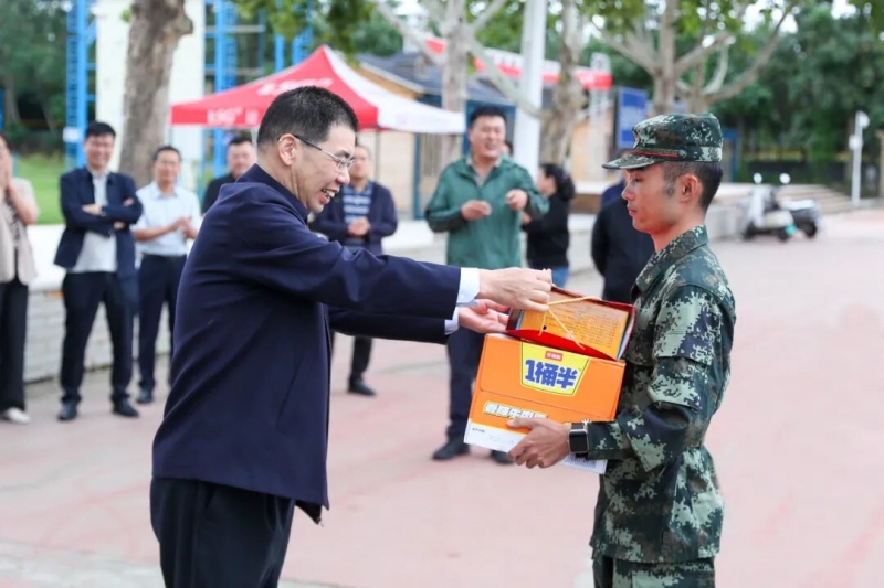 在军训现场,张进超一行慰问了全体军训教官,对教官们前一阶段的辛勤付出与训练成果给予高度肯定。张进超表示,军训是新生入学教育的重要环节,对培养学生纪律意识、团队精神和坚韧品质具有重要意义,感谢教官们科学施训、严格要求,为新生们上好大学“第一课”。同时,他鼓励教官们继续发扬优良作风,精心组织后续训练,确保新生以良好的精神面貌和身体素质迎接军训汇报展演。