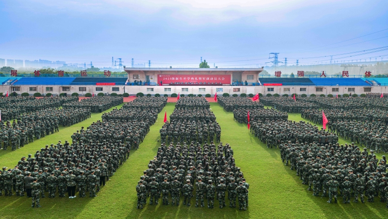 9月10日,郑州信息工程职业学院分别在南北校区举行2025级新生开学典礼暨军训动员大会。