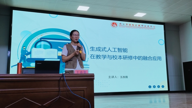此次培训,滑县教师进修学校校长李均以《以热爱抵岁月漫长,用责任书教育华章》为题,带来开班第一课。通过四个真实故事的讲述,他从教育热爱与育人责任两方面展开深情分享,有情怀、有信念,引发在场教师的强烈共鸣。数理研修部主任李金朋对送教下乡培训方案作了详细解读,明确各阶段任务与目标,为培训绘制出清晰的“施工图”。周口市淮阳区教师发展中心研训中心主任王改霞开展《人工智能在教学和校本研修中的融合应用》专题讲座。围绕“理性思考”和“具体路径”两个维度,她通过智能备课、AI学情分析、个性化作业推送等实例,生动展示AI技术与教学的深度融合。在校本研修方面,她重点介绍了AI课堂行为分析与教学效果智能评估等实用工具,展现数据驱动下教研活动的科学转型。现场互动热烈,教师们纷纷表示,“理论+实践”的课程设计既有认知启发,又具操作指导,为今后人工智能教育应用指明了方向。