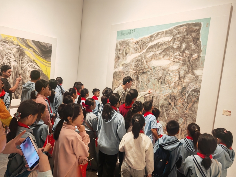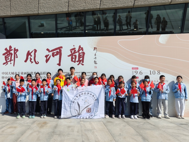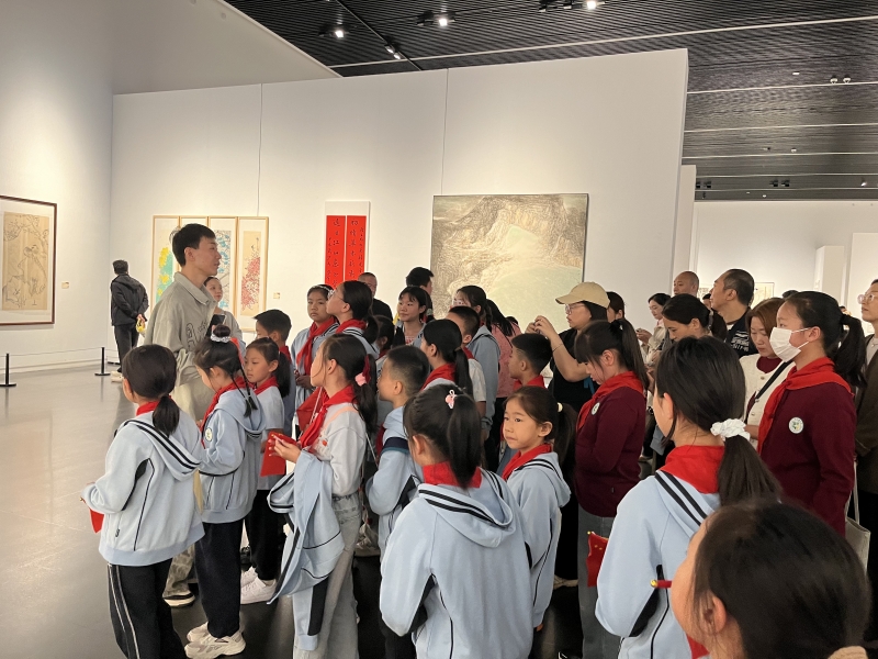 近日,为庆祝新中国成立76周年,郑州美术馆迎来“中国大城市专业画院优秀作品展”,展览汇聚全国多位艺术家的百余幅精品力作。郑州市金水区沙口路小学“翰墨兰轩”国画社师生在辅导老师张子轩的带领下,前往观展,开展了一堂生动的“行走中的美术课”。