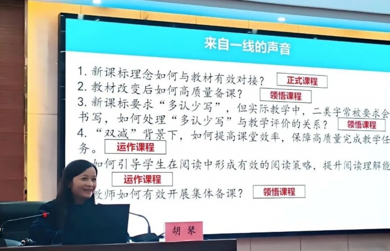 全国十大青年名师、河南省名师胡琴以“小学语文‘教—学—评’一体化的实践与思考”为题作讲座。她结合丰富的教学实践与课题研究成果,从“为什么要一体化”“一体化的内涵”“如何实施”三个方面,生动阐释了在语文课堂中落实“教—学—评”一体化的路径。参会教师纷纷表示深受启发,对课堂革新有了更清晰的方向,并现场解答了教学一线的问题。