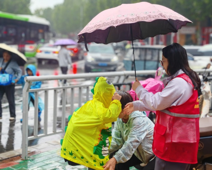 清晨的一场雨,让校门口的“护学岗”显得格外忙碌。身着志愿者服装的家长们早已就位,有的为孩子撑伞,护送他们穿过雨幕;有的在道路旁引导车辆,确保通道畅通;还有的细心提醒奔跑的孩子注意脚下安全……这些看似平凡的举动,共同构成了“凤翼护学岗”最动人的画面。
