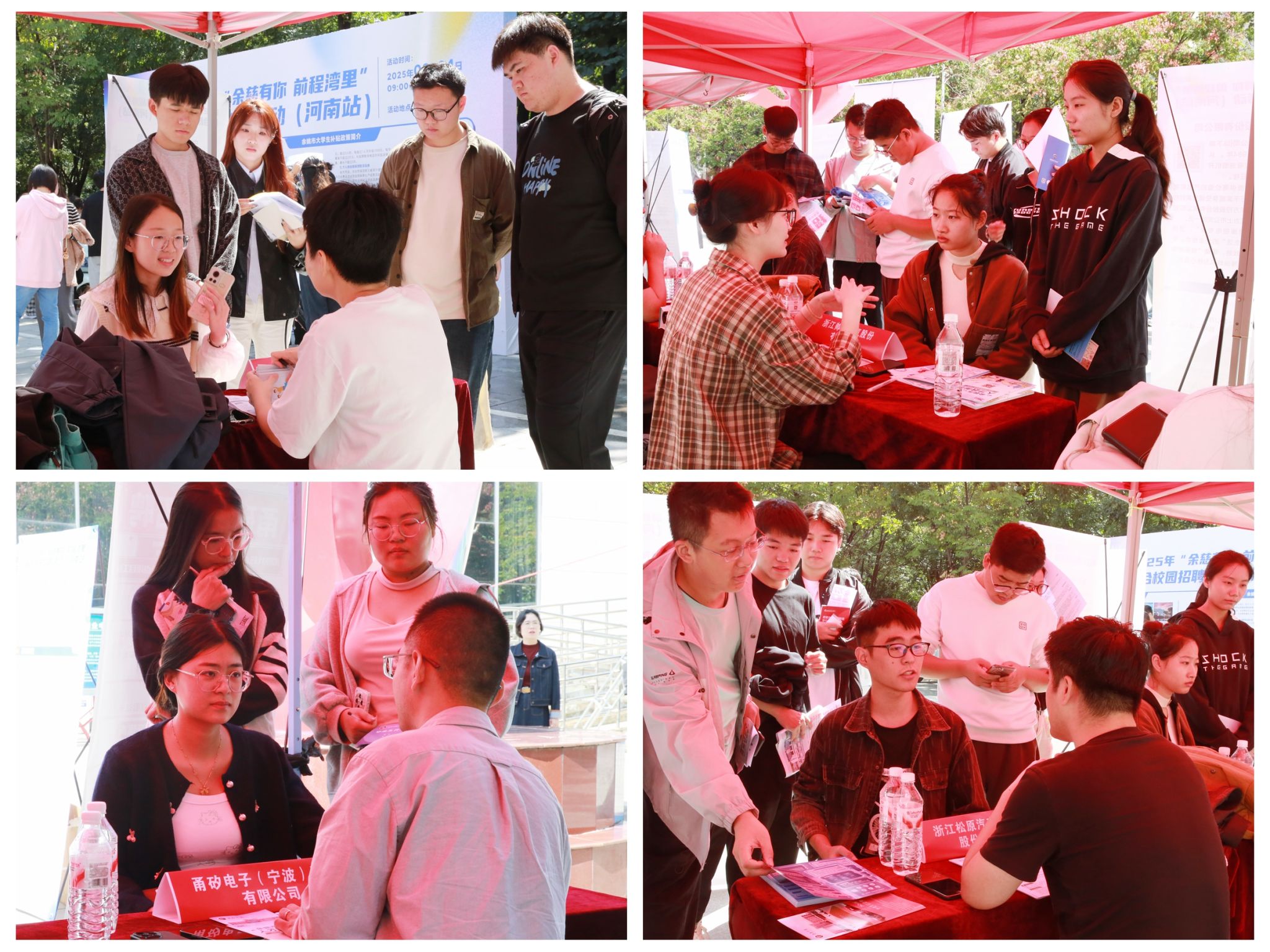 9月24日,由余姚市人力资源和社会保障局、台州市人力资源和社会保障局分别主办,以“余慈有你 前程湾里”、“智汇台州”为主题的浙江余姚、台州校园专场招聘会在许昌学院创新创业中心楼前广场举行。甬矽电子(宁波)股份有限公司、浙江松原汽车安全系统股份有限公司、浙江圣达生物药业股份有限公司、浙江万胜智能科技股份有限公司等43家余姚、台州头部企业及许昌学院千余名2026届毕业生参会。