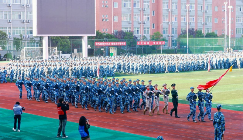 本次开学典礼暨军训汇演在学校官方视频号同步直播。各职能部门负责人,各学院(部)党委(党支部)书记、院长参加活动。