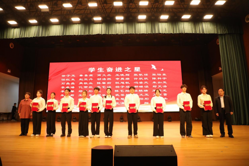 会上,学校纪委书记邵雪峰宣读了《中共驻马店职业技术学院委员会关于表彰2024-2025学年“向上向善 感恩奋进”主题活动优秀师生、优秀集体的通知》,集中表彰了96名学生奋进之星、26名教师奋进之星以及8个“向上向善 感恩奋进”优秀集体。在热烈的掌声中,副校长李凤霞、纪委书记邵雪峰为“学生奋进之星”代表颁奖,见证青年学子的成长与担当;校长宋华民为“教师奋进之星”代表颁奖,致敬教师群体在教书育人与活动组织中的坚守与付出;党委书记苏新留为“优秀集体”代表颁奖,肯定各单位在营造校园良好氛围中的协同发力与突出贡献。