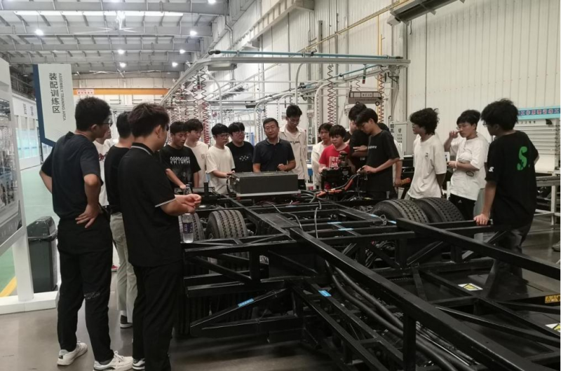 活动首站,学校300多名汽车学院新生代表的科普活动,开展实地参观学习,通过“感受-共学-实践”联动模式,聚焦商用车前沿新技术,为新生们上了一堂生动的专业教育“开学第一课”。