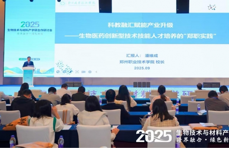 9月27日,郑州职业技术学院党委副书记、校长潘维成教授出席“2025全国生物技术与材料产学研合作研讨会”并作主旨报告。