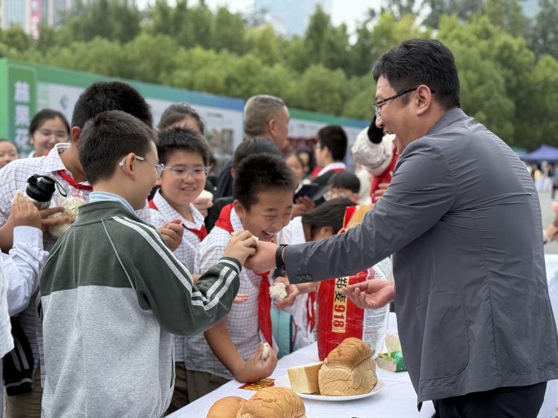 走进农作物实物展区, 花生、玉米、稻子……“组团亮相”。学生们伸手触摸饱满果实,听工作人员讲解稻谷加工成米饭的过程,还现场观察花生、玉米形态,认真记录在研学手册上。美食品尝区里,面包、馒头、西红柿、辣椒酱等美食香气四溢。学生们对比不同西红柿风味,搭配辣椒酱品尝热馒头,在美味中感受农作物价值。