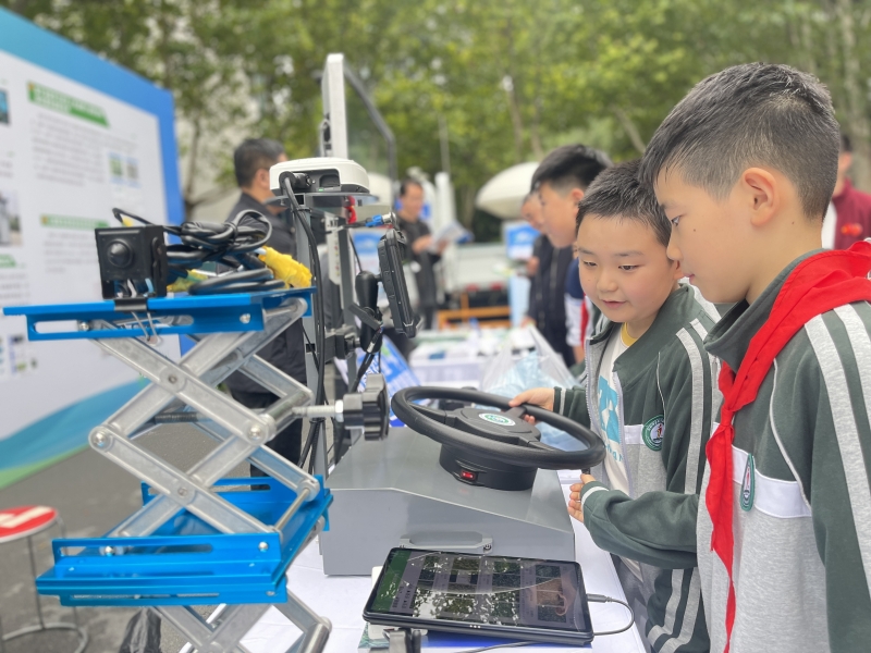 农具展示区里,智能播种机、无人机植保设备等高科技农业工具吸引目光。工作人员演示无人机功能,学生们尝试操作播种机按钮,感受科技助农力量。旁边的展台上,化肥样本与检测仪器并列,工作人员讲解科学使用化肥的方法,让学生们了解 “庄稼长得好” 的科学原理。
