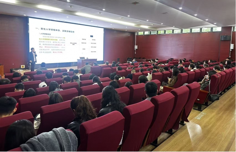 随后,王秀鸽结合《普通高等学校学生管理规定》及《新乡工程学院学籍管理规定》等相关文件,对休学、复学、转专业、退学、开除学籍等学籍异动管理业务进行了详细说明。她指出,学籍异动管理事关学生切身利益和学校教学秩序稳定,学籍管理工作应始终坚持以立德树人为根本,以服务学生成长成才为目标,不断加强对相关政策法规的学习理解,提升管理效能与服务温度,切实为学生提供规范、便捷、暖心的学业服务。