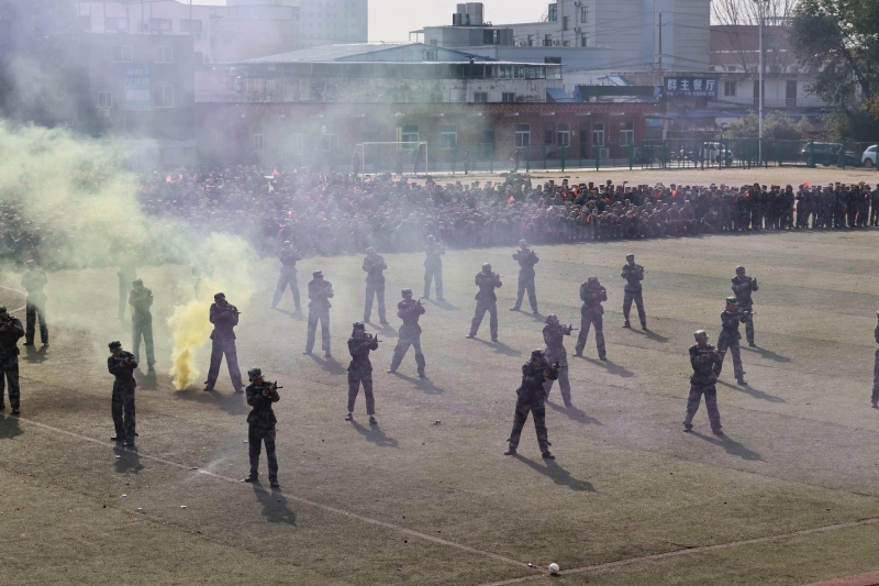 张力宣读了军训表彰决定,校领导向获得荣誉的连队和教官颁奖。