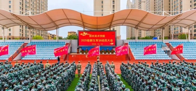 飒爽英姿致青春,淬炼意志启新程。2025年10月10日上午,郑州美术学院2025级新生军训动员大会在田径场隆重举行,全体2025级新生身着挺拔迷彩服,以昂扬姿态开启淬炼成长的新征程。学校领导,承训教官,相关职能部门负责人及新生辅导员、2025级全体新生参会。大会由党委副书记、副校长李亚飞主持。