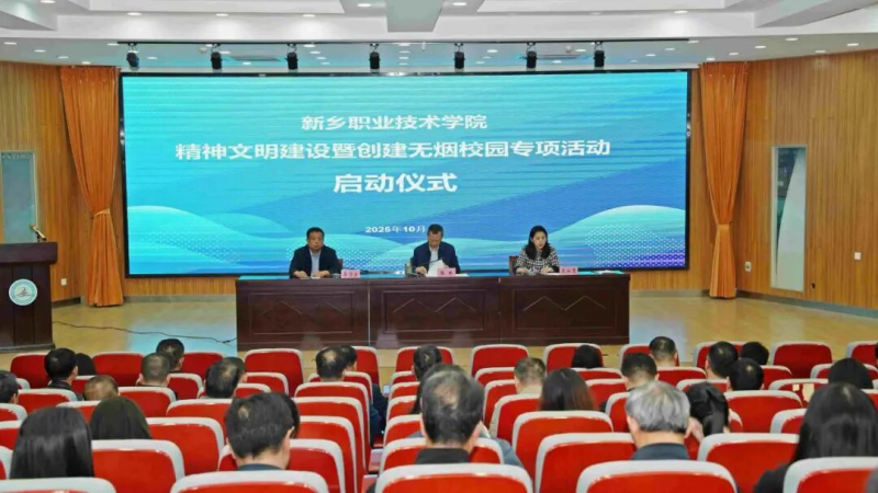 10月14日下午,新乡职业技术学院在实验楼一楼阶梯教室举行“清新校园 无烟青春”精神文明建设暨创建无烟校园专项活动启动仪式。党委书记张林、副校长原淑慧、纪委书记李学良出席,学校中层及以上干部、辅导员和学生代表、食堂及商户代表共同参与,活动由副校长原淑慧主持。