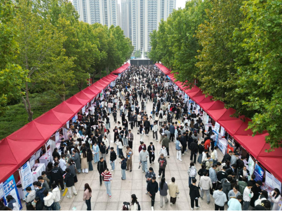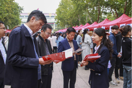 为深入贯彻落实党中央、国务院和省委、省政府对高校毕业生就业工作的决策部署,积极响应省教育厅关于启动2026届河南省高校毕业生金秋校园招聘月活动的号召,10月16日,郑州经贸学院在学校喷泉广场举办“豫荐未来 职等你来”——2026届毕业生秋季校园双选会。校领导陈丙义、张超、杨德明一行莅临双选会现场指导工作。